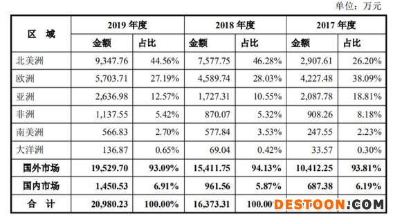 安旭生物招股书显示,其主营POCT试剂及仪器,涵盖毒品检测系列、传染病检测系列等8大类,产品销售以外销为主,2017-2019年,安旭生物的境外收入分别为1.04亿元、1.54亿元、1.95亿元。