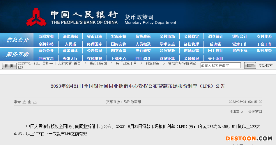 当日,中国人民银行授权全国银行间同业拆借中心公布,1年期LPR为3.45%,5年期以上LPR为4.2%。1年期LPR较上一期下降10个基点,5年期以上LPR保持不变。
