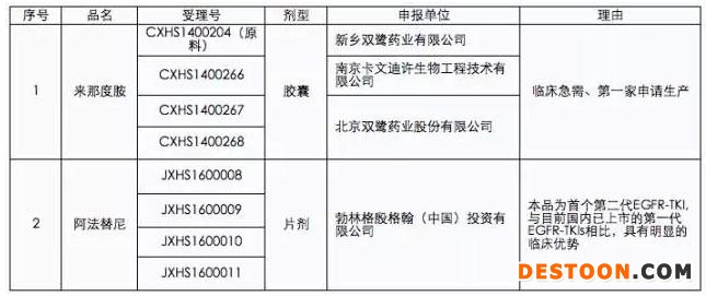 根据CFDA《关于解决药品注册申请积压实行优先审评审批的意见》公告,CDE于2016年4月20日组织专家,按照《药品审评中心优先审评工作程序(试行)》,对申请优先审评的用于抗肿瘤适应症的药品注册申请进行了审核论证。下述注册申请品种为临床急需或与我国现有治疗药品比较具有明显的临床优势,拟纳入优先审评程序: