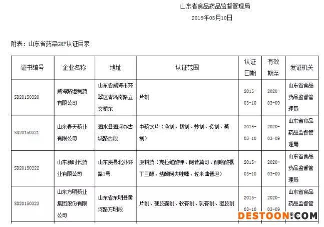公开资料显示,山东新时代药业主要从事中药、西药、生物制药的原料及制剂的开发和生产,山东省食药监局于2015年3月10日发布的公告显示,山东新时代药业已经通过了原料药的GMP认证。